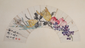 编号:11576 作者:王雪涛 名称:果蔬图 规格:13*47cm 形式:纸本扇面 售价:¥28000 备注: