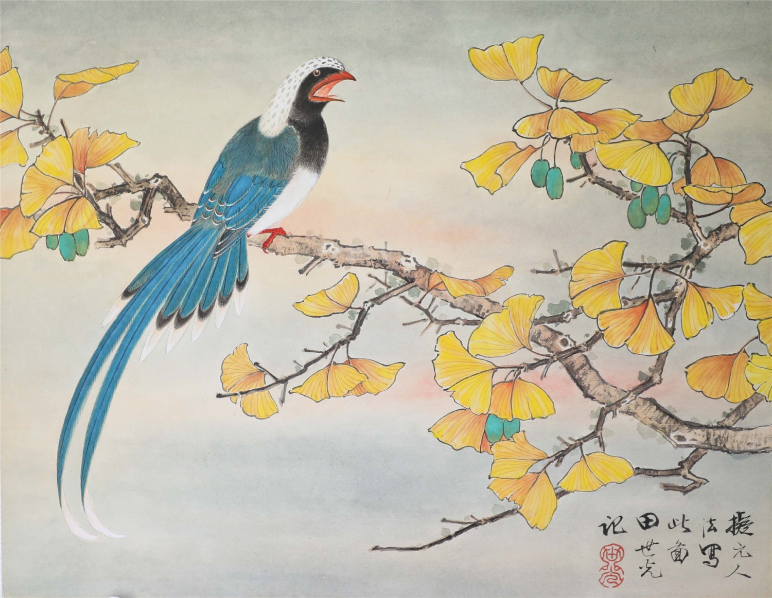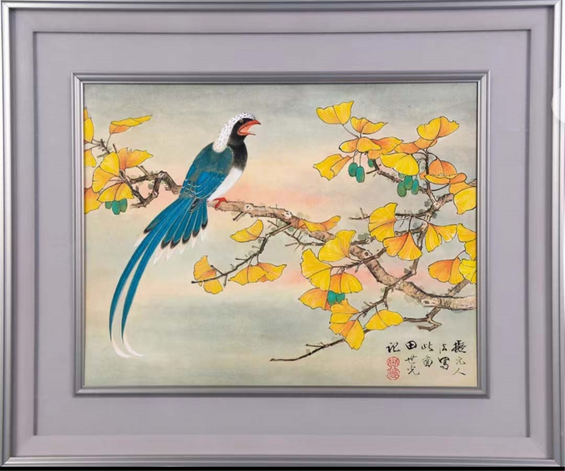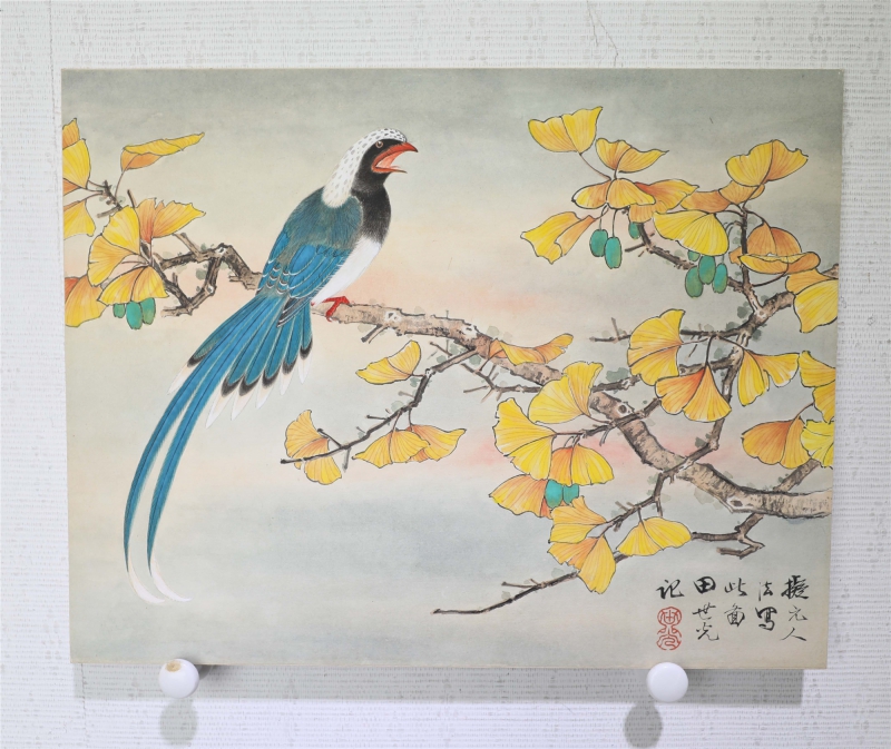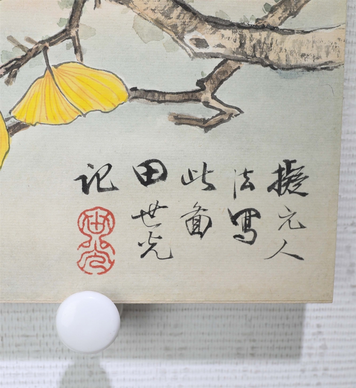 田世光(1916年10月—1999年7月)号公炜,祖籍山东乐陵,世居北京西海淀六郎庄。师承张大千、赵梦朱、吴镜汀、于非闇、齐白石诸先生。早年拜张大千门下,为大风堂弟子之一 。早年求学于京华美术学院,专攻国画花鸟,解放前在北平国立艺专任教,曾任中央美院教授。他长期从事花鸟、山水画创作,继承了宋元派双勾重彩工笔花鸟画的优良传统技法,并赋之予新的时代精神,为我国现代工笔花鸟画名家。田世光先生是中国美术家协会会员,北京工笔重彩画副会长,中国画研究院第一届院务委员。
