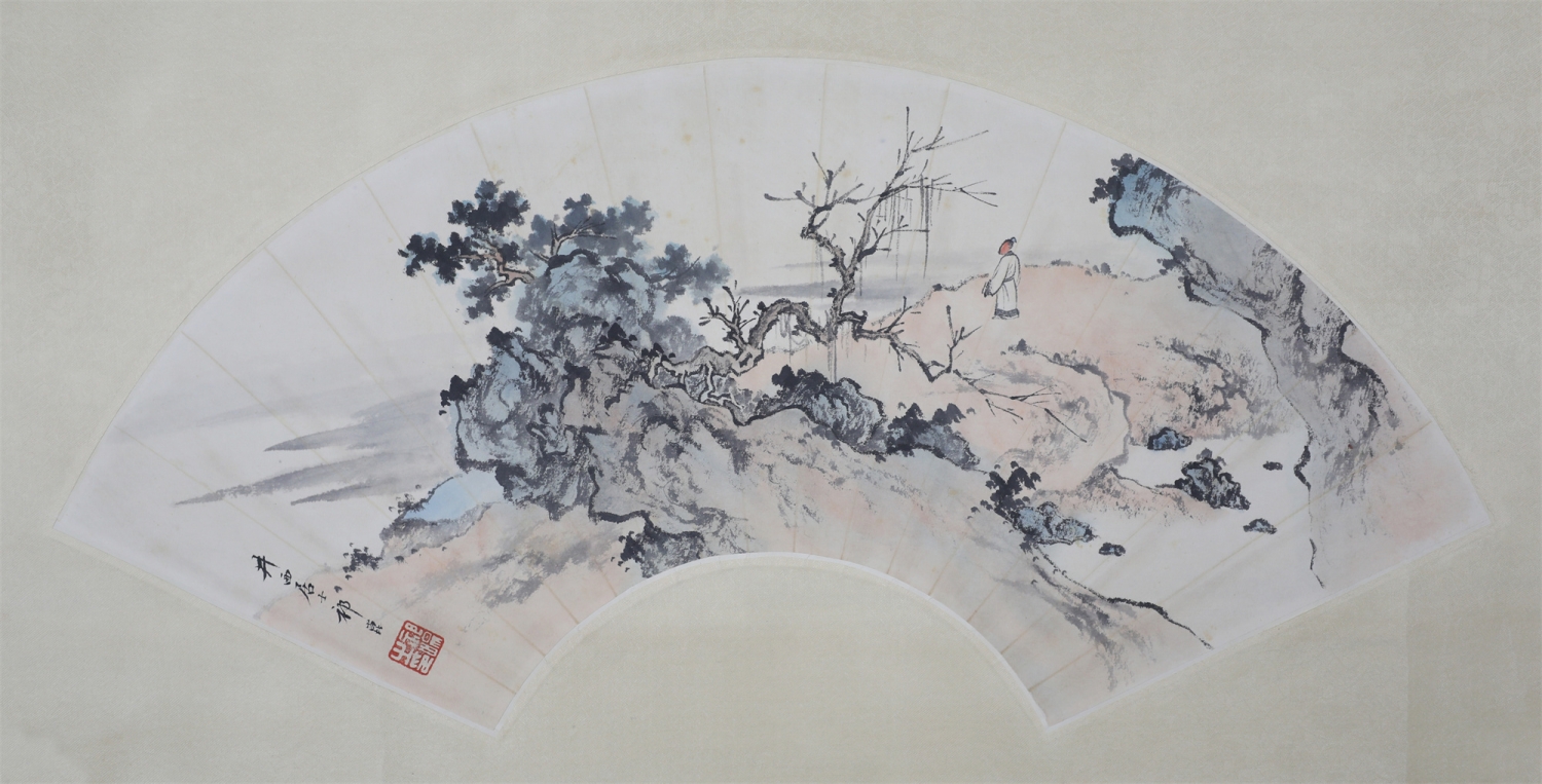山水人物扇面
