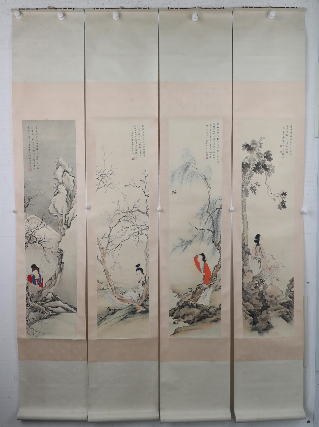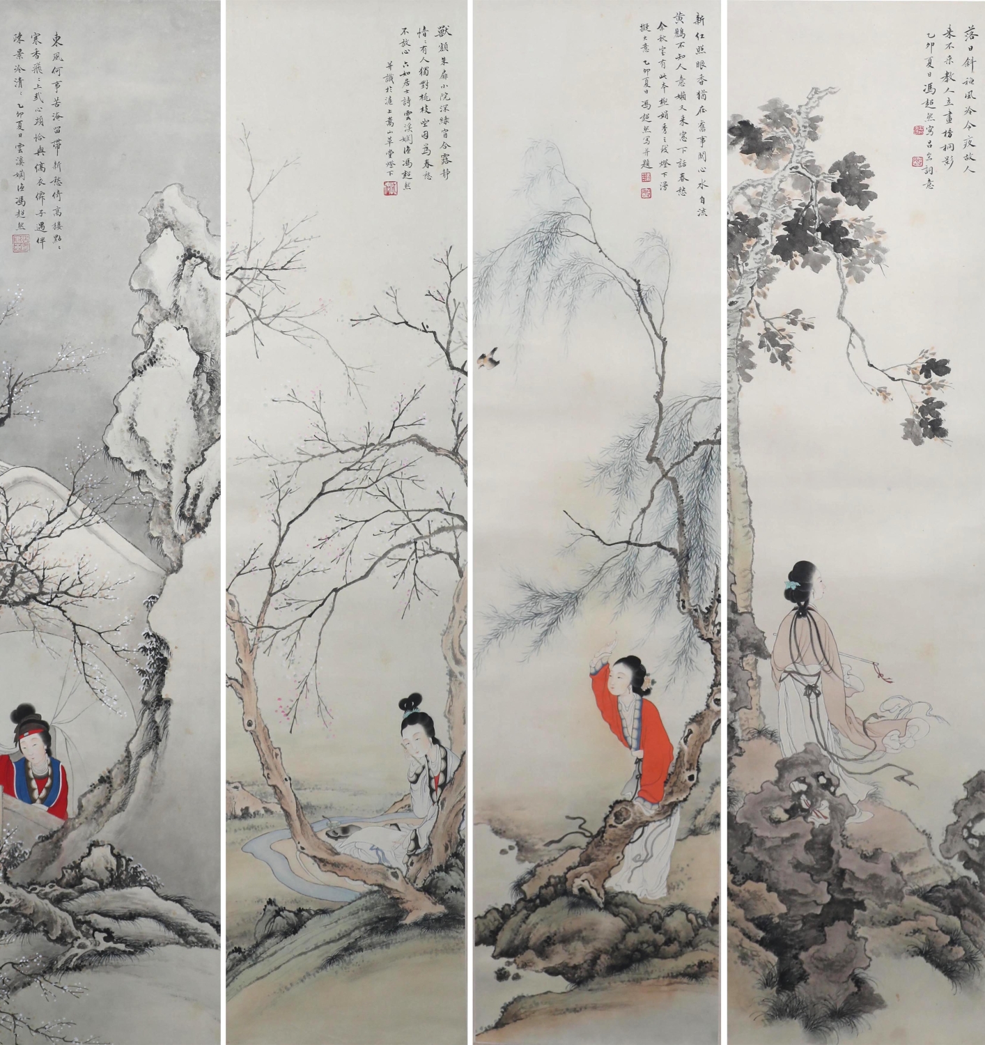 仕女四条屏