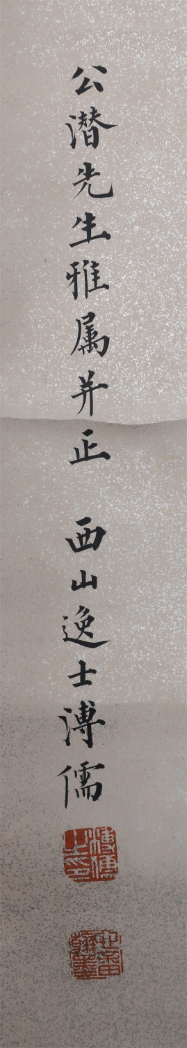 溥心畬[yú],满族,原名爱新觉罗·溥儒,初字仲衡,改字心畬,自号羲皇上人、西山逸士,北京人,著名书画家、收藏家。为清恭亲王奕訢之孙。曾留学德国,笃嗜诗文、书画,皆有成就。画工山水、兼擅人物、花卉及书法,与张大千有“南张北溥”之誉,又与吴湖帆并称“南吴北溥”。