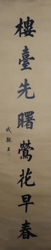 成亲王,爱新觉罗·永瑆(1752-1823)是乾隆帝的第十一个儿子,嘉庆皇帝的哥哥,在嘉庆年间担任军机处行走。开始学赵孟頫的书法,后来也学习欧阳询书法的特点,并广泛地临摹晋、唐、宋、明各家书法,因而形成了端正清丽、劲俏流畅的风格。成亲王以楷书、行书著称于世,是清代著名的书法家。