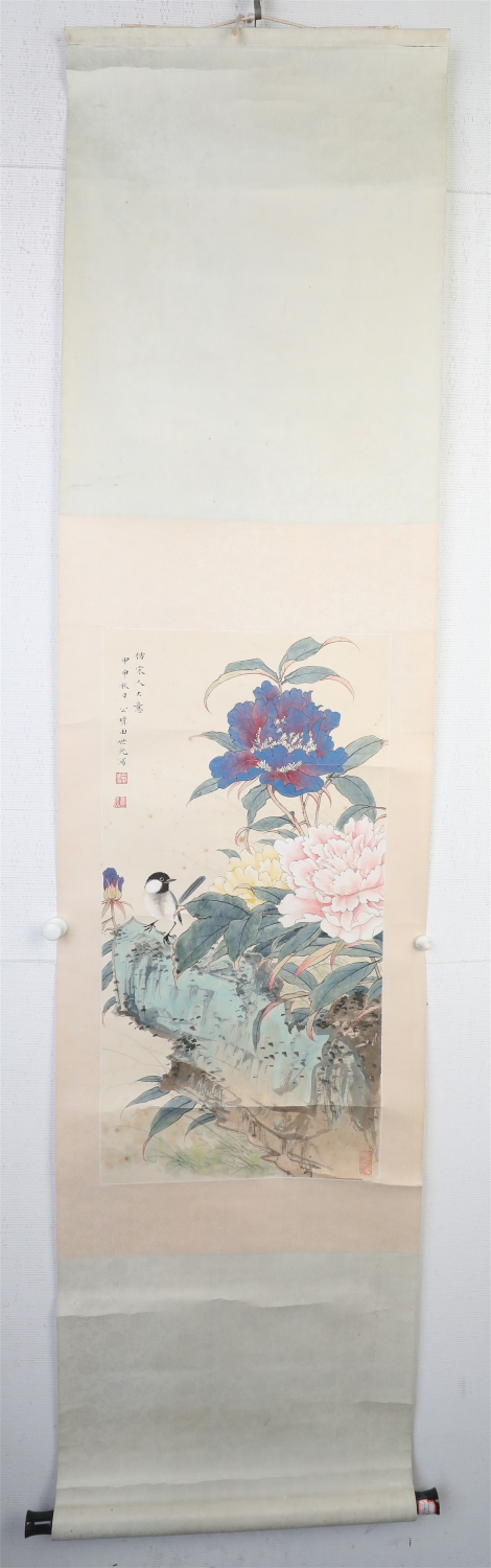 田世光(1916年10月—1999年7月)号公炜,祖籍山东乐陵,世居北京西海淀六郎庄。师承张大千、赵梦朱、吴镜汀、于非闇、齐白石诸先生。早年拜张大千门下,为大风堂弟子之一 。早年求学于京华美术学院,专攻国画花鸟,解放前在北平国立艺专任教,曾任中央美院教授。他长期从事花鸟、山水画创作,继承了宋元派双勾重彩工笔花鸟画的优良传统技法,并赋之予新的时代精神,为我国现代工笔花鸟画名家。田世光先生是中国美术家协会会员,北京工笔重彩画副会长,中国画研究院第一届院务委员。